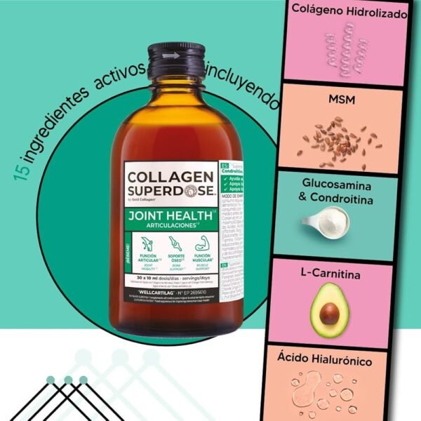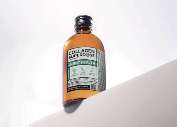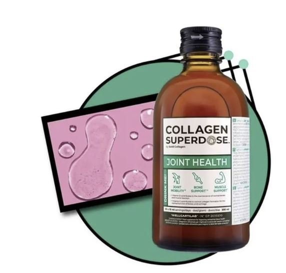 Collagen SUPERDOSE by GOLD COLLAGEN is a liquid collagen supplement with Vitamin C, Vitamin D, and Hyaluronic Acid to support joint, muscle, and bone health. Designed for both women and men, it helps maintain flexibility, strength, and overall mobility.
